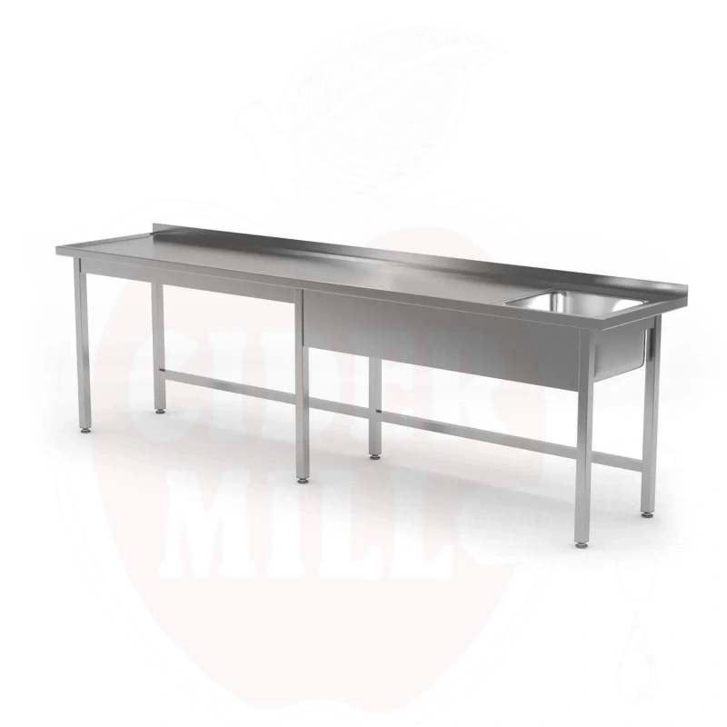 Bordet i rostfritt stål med diskho är idealiskt för att utöka matberedningsområden i professionella kök. Bordet är enkelt att använda - installera det på en lämplig plats, anslut det till vattenförsörjningen och njut av den extra arbetsytan och den bekväma diskhon. Inga elektrikertjänster krävs för installation.