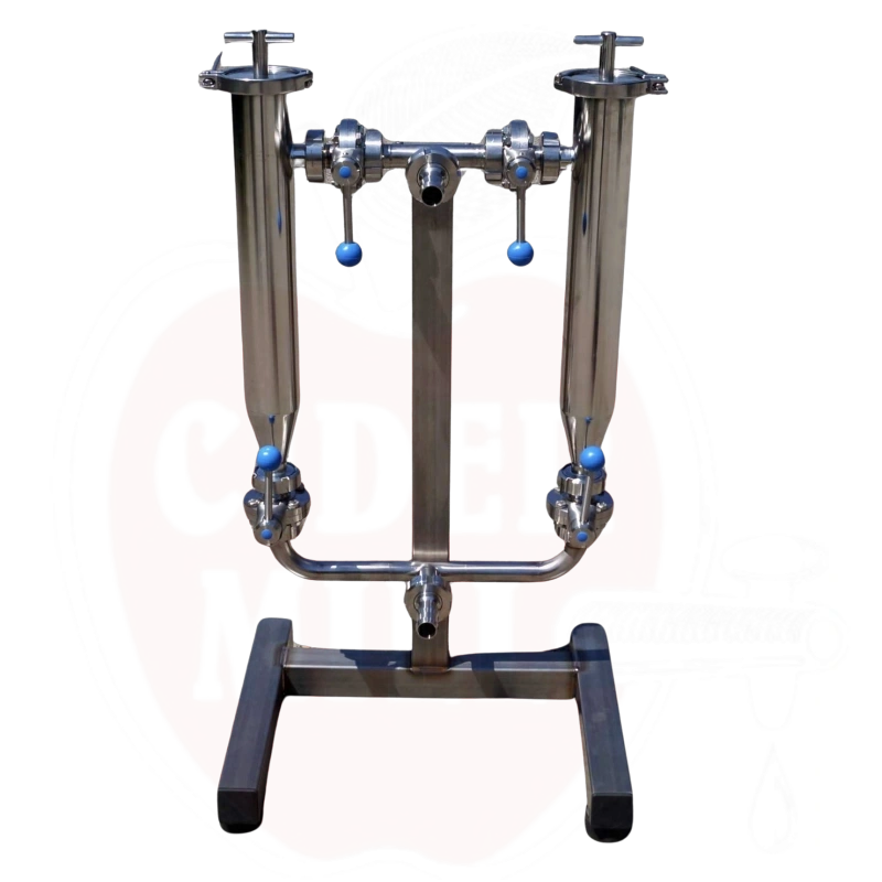 Maurers förfilter av tysk kvalitet är tillverkad av hållbart rostfritt stål och är utrustad med två filterelement. Enheten är speciellt designad för förfiltrering av juice.