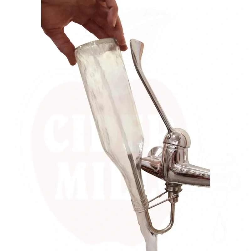 Den praktiska flasksköljningsutrustningen gör rengöring av flaskor, burkar och andra behållare snabb och bekväm. Utrustningen är mycket enkel att använda - placera flaskan på enheten och det centrala vattentrycket gör jobbet åt dig på bara några sekunder.