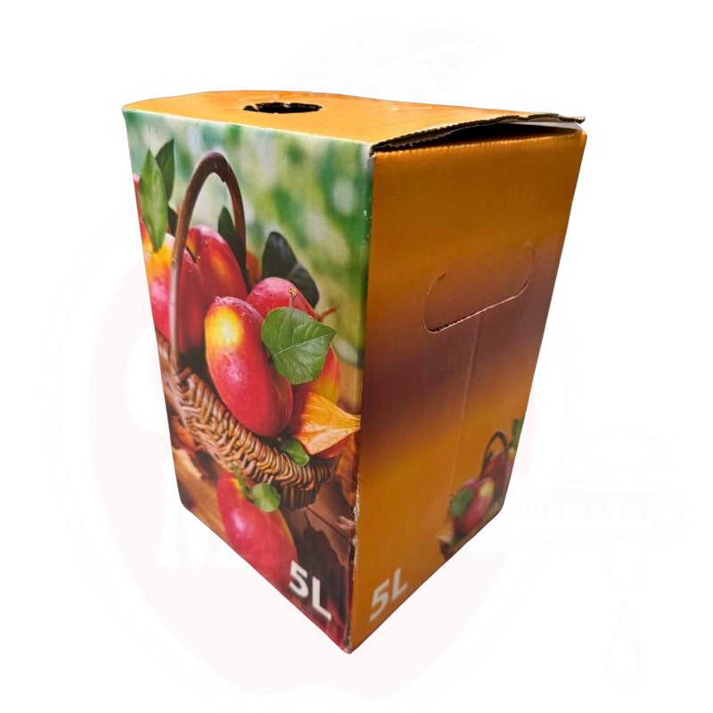 Kartonglådan säkerställer stabilitet för juiceförvaringspåsen och skyddar den mot yttre påverkan. Tack vare den robusta konstruktionen kan lådan återanvändas flera gånger. Lådorna är enkla att vika ihop och tar lite förvaringsutrymme.
