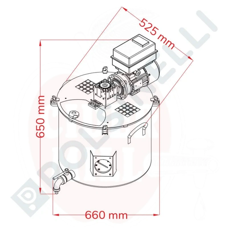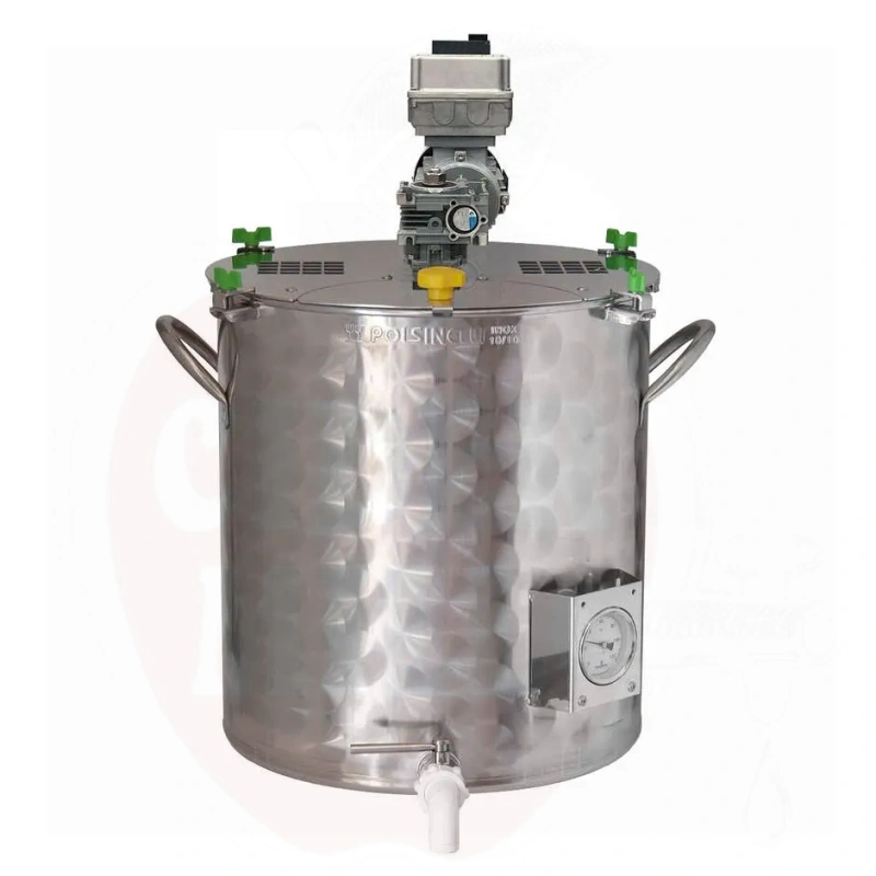 Egenskaper: Utrustad med livsmedelsgodkänd silikonskrapa för botten, förhindrar bränning, integrerad 1" rostfri stål kulventil för enkel tappning, robust växelmotor med frekvensomriktare för justerbar omrörningshastighet och riktningsändring, ergonomiska handtag, förstärkt och tjockt rostfritt stållock med ånghal och krok, analog termometer med sondport för precis temperaturövervakning. Gryta konstruerad i AISI 304 rostfritt stål med hållbara omrörningsblad och ENO 30 livsmedelsgodkänd plastböj.