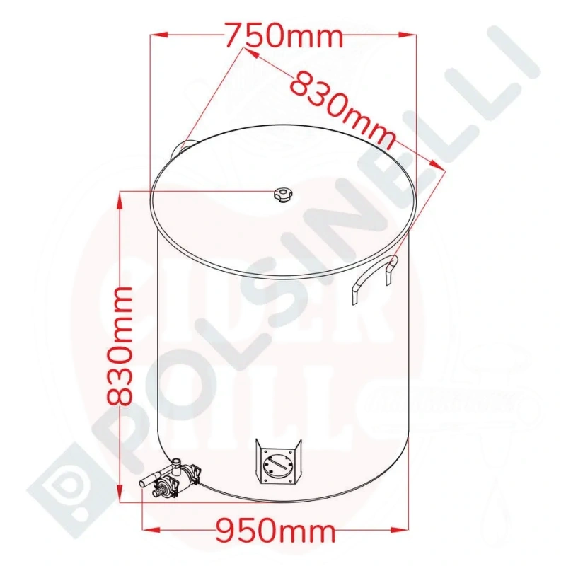 Egenskaper: Tillverkad av 18/10 rostfritt stål (AISI 304) med släta fogar för enkel rengöring. Utrustad med professionell analog termometer, Tri-Clamp snabbkopplingssystem inklusive klämventil och slangnippel, packningar och rostfritt stålllock med handtag. Enkel verktygsfri montering och demontering.