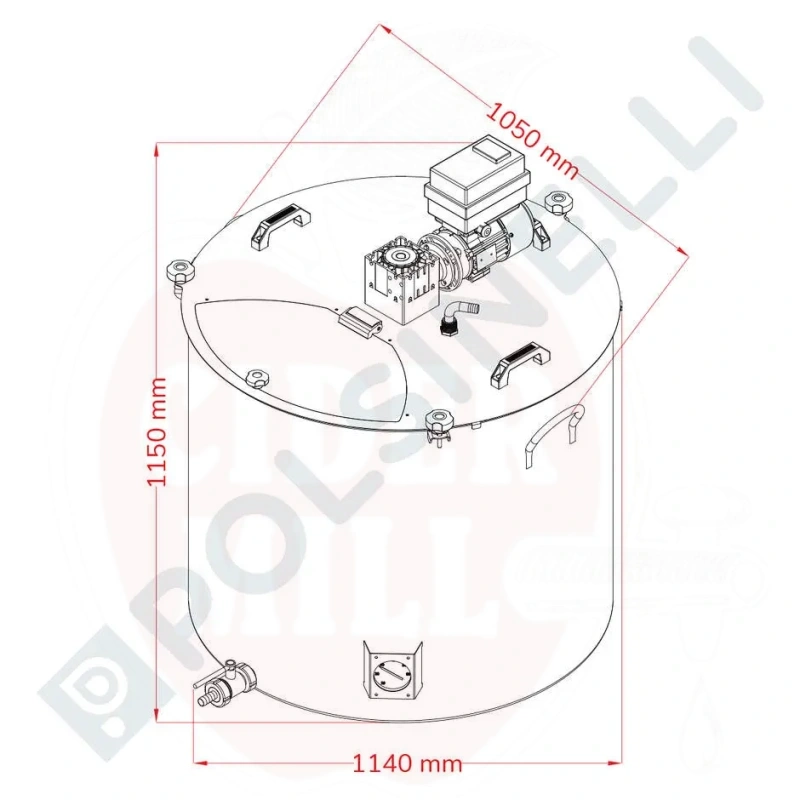 Tehnilised andmed: Maht: 500 L, materjal: roostevaba teras 304, toide: ühefaasiline 220 V, energiatarve: 0,37 kW, reguleeritav kiirus: 6–42 rpm, siseläbimõõt: 930 mm, kõrgus: 800 mm, kogumõõtmed koos mootoriga: 1020 x 1055(h) mm. CE-sertifikaat.