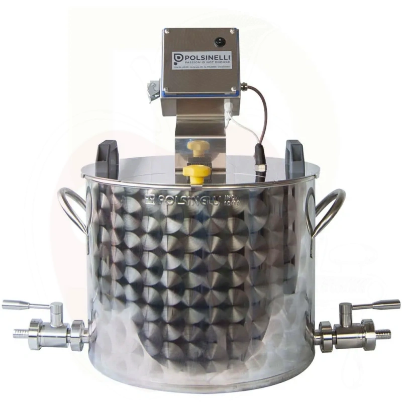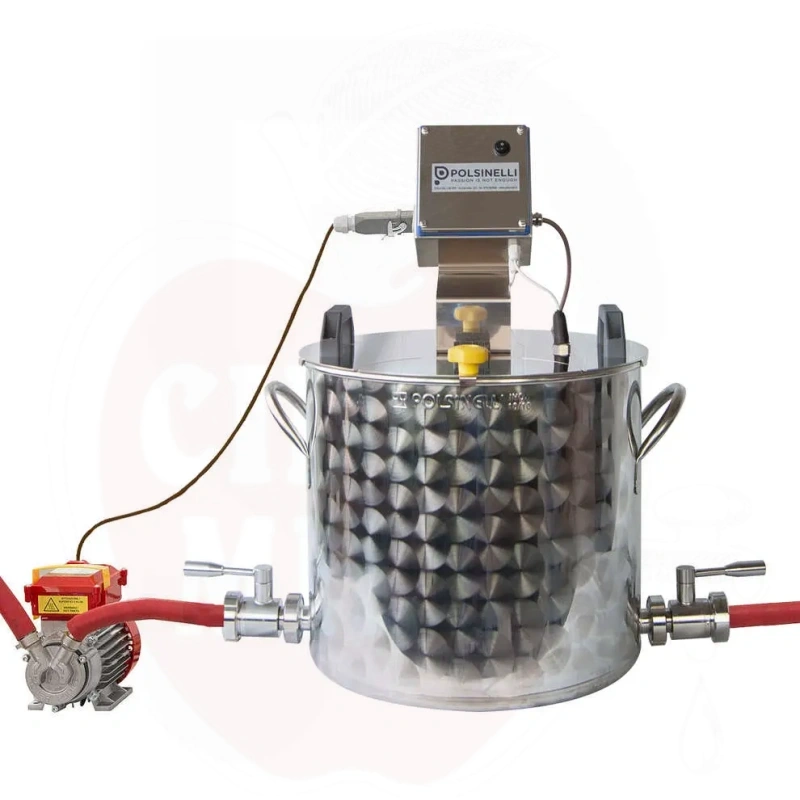 Egenskaper: Tillverkad av AISI 304 rostfritt stål, upprätthåller höga hygienstandard och bevarar livsmedelsvätskornas egenskaper. Grytan har två DIN 25 rostfria stålventiler (inlopp i botten, utlopp kopplat till pump), en sensor för automatisk pumpdrift och en lufttät överföring för att förhindra oxidation.