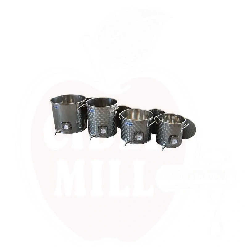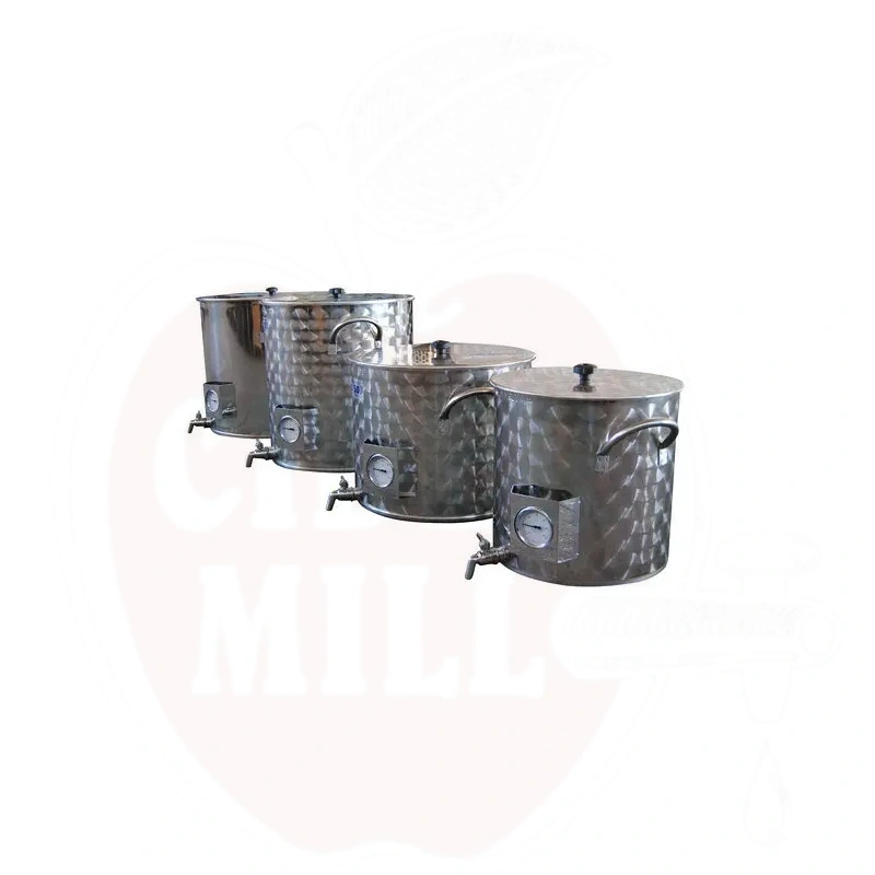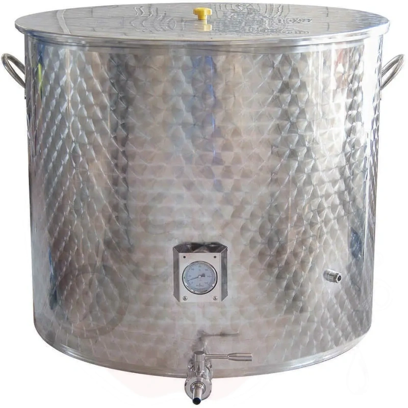 Med lock, termometer och kran i rostfritt stål.