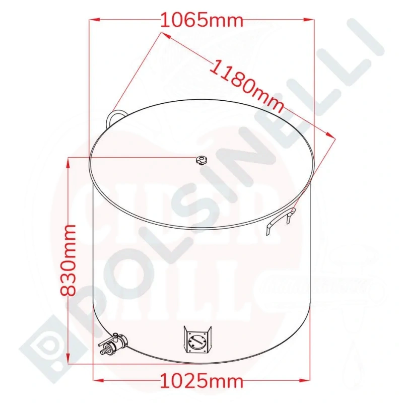 660L ölbryggningskitteln i rostfritt stål är en professionell kvalitetsprodukt som tack vare den högt specialiserade tillverkningen möter alla professionella och hembryggarentusiasters behov. Tillverkad i 18/10 rostfritt stål (AISI 304), ett extremt hållbart och kemiskt inert material. 660L ölbryggningskitteln bevarar innehållets organoleptiska egenskaper och garanterar effektiv bryggning, även tack vare den 2mm tjocka botten som optimalt fördelar värme utan aktiv isolering. Denna modell inkluderar som standard ett lock i rostfritt stål med knopp, två ergonomiska handtag och en svetsad DIN 25 F anslutning i rostfritt stål för ventilmontering. Även en professionell analog termometer med skydd ingår. Med en diameter på 1025mm och höjd 800mm passar 660L ölbryggningskitteln i alla bryggningslokaler.