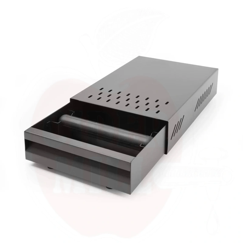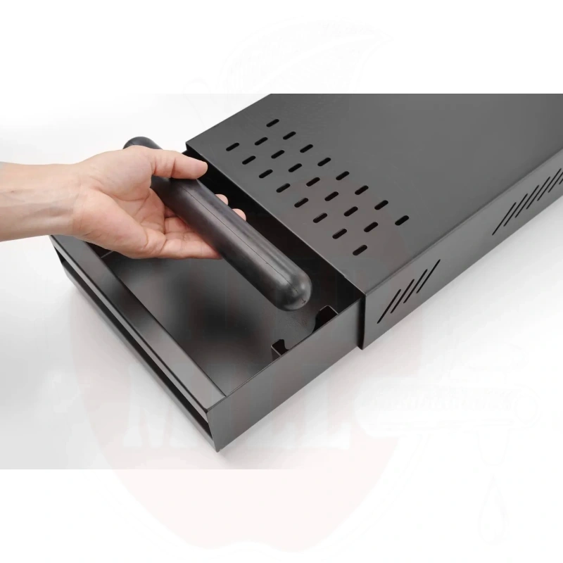 Lådmodell tillverkad av kolstål. Utrustad med avtagbar knockstång och perforerad ovansida.
