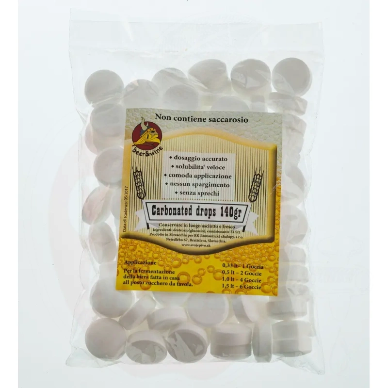 Högkvalitativa kolsyretabletter garanterar perfekt karbonering av ditt hemgjorda öl och cider. Varje tablett innehåller exakt 1,5g dextros, vilket ger drycken en renare smak jämfört med vanligt socker.