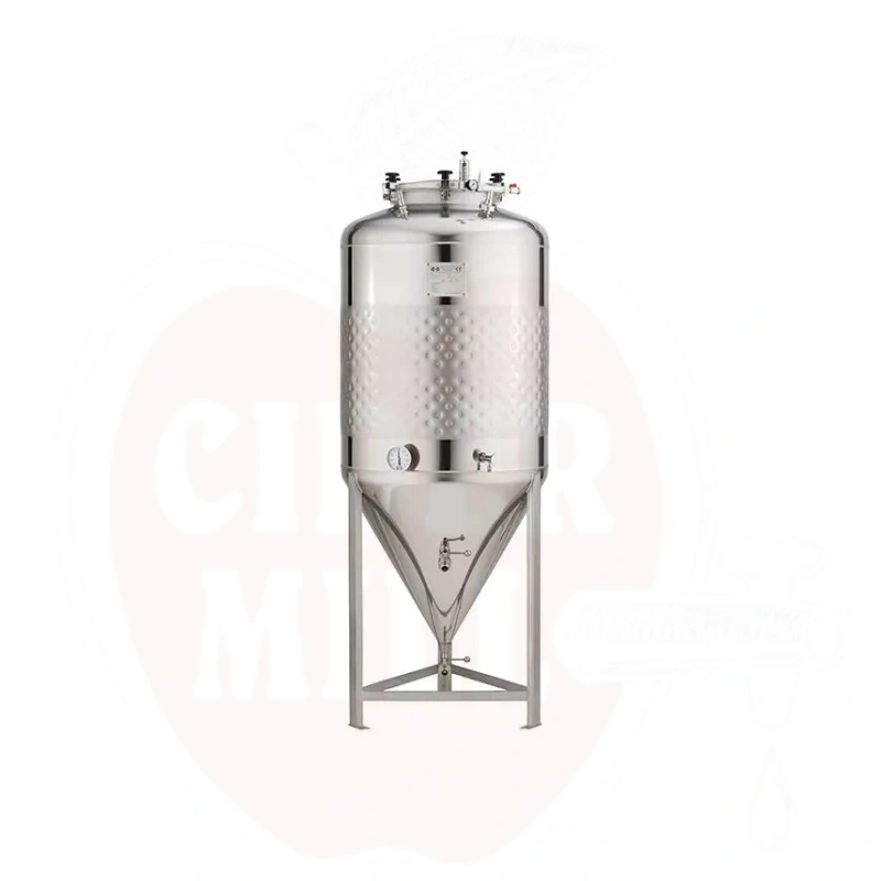 Högkvalitativ rostfri konisk tank perfekt för trycksatt jäsning och lagring av vin och juice. Tillverkad av 2mm EN 1.4301 (AISI 304) rostfritt stål som garanterar hållbarhet och hygien.