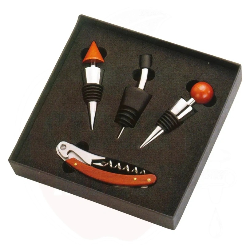 Nyckelord: vinöppnare, vintillbehör, vinset, vinförslutare, hällpip, bartillbehör, vinförvaring, korkskruv