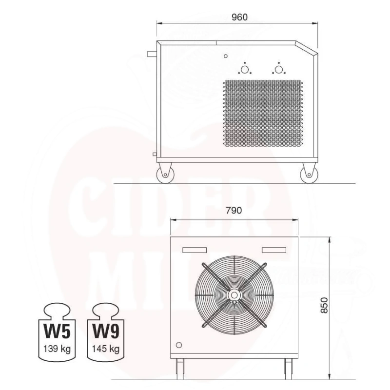 Kompakt och mobil kylanläggning för exakt kontroll av vinjäsningsprocessen. Enheten är tillverkad i Italien med ett helrostfritt stålhölje som garanterar högsta kvalitet och hållbarhet.