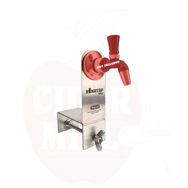Observera: satsen innehåller endast den rostfria stålklämman. Mini NukaTap eller kranaxeln (shank) ingår inte. Klampsatsen möjliggör vertikal installation av kranen på sidan av ett kylskåp eller en kylbox, vilket säkerställer ett stabilt och säkert fäste.