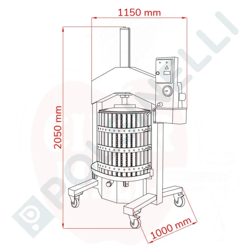 Användning: Professionell vertikal press för vin- och fruktbearbetning med roterande korg för förbättrad saftutvinning.