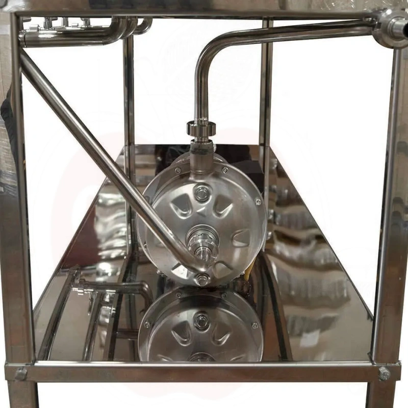 Egenskaper: Helt konstruerad av rostfritt stål 18/10. Inkluderar 2 x 100L tankar (anpassningsbara upp till 200L). Utrustad med kranar och kopplingar i rostfritt stål (DIN 15), elektrisk resistansvärmare (0–120°C reglering) och högflödespump (1,4kW, 230/400V). Tankar med botten- och 40mm frontventiler för effektiv påfyllning och tömning. Mått: 1000 x 500 x 1350mm.
