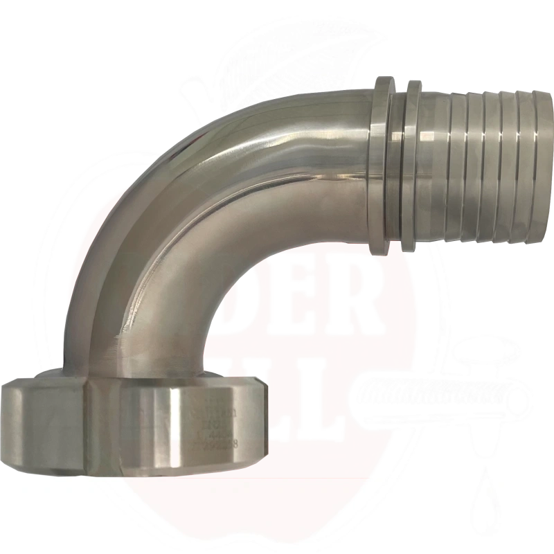 En DIN-standardiserad vinkel i rostfritt stål av hög kvalitet, speciellt utformad för slanganslutningar. Denna hållbara komponent är idealisk för juice- och vätskeindustrin och garanterar en säker och hermetisk anslutning.