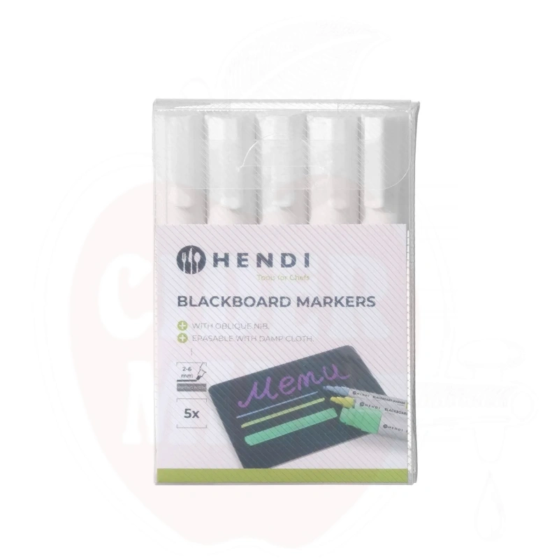 Blackboard markers 6 mm, 5 white markers, HENDI